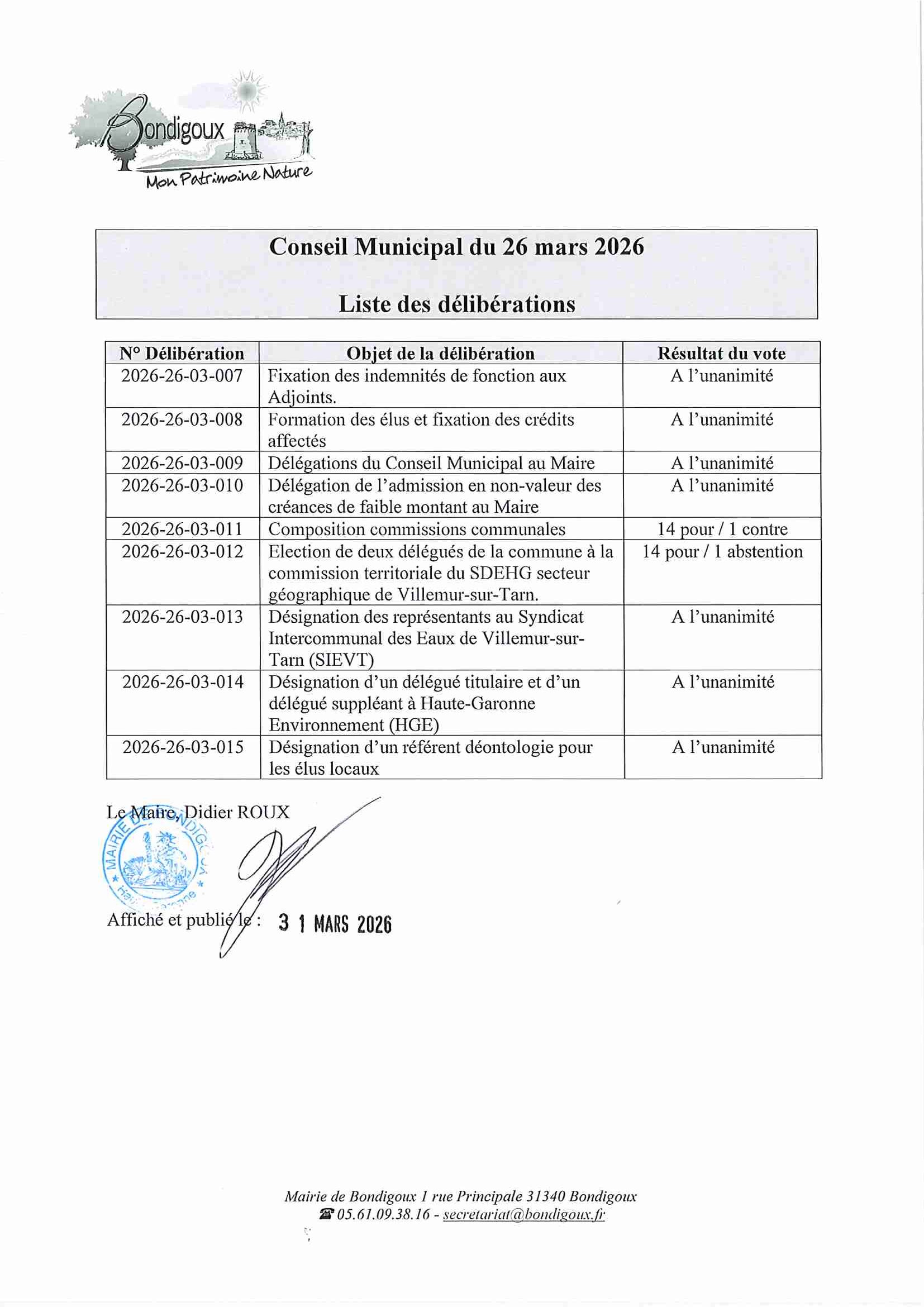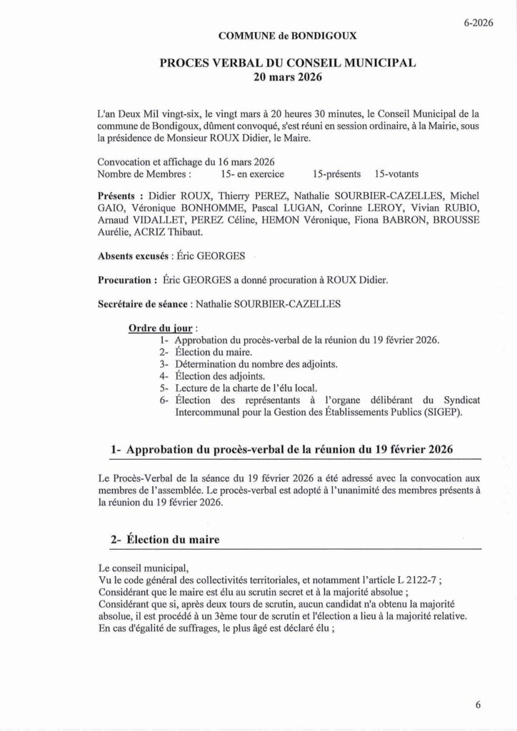 Réunion du Conseil Municipal 20 mars 202616 mars 2026/ -
